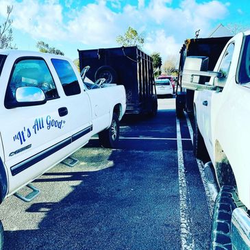 Dump fees and 2 hours of labor to move material included in the prices below. A full trailer is approximately 13 cubic yards. Truck and dump trailer pictured above.